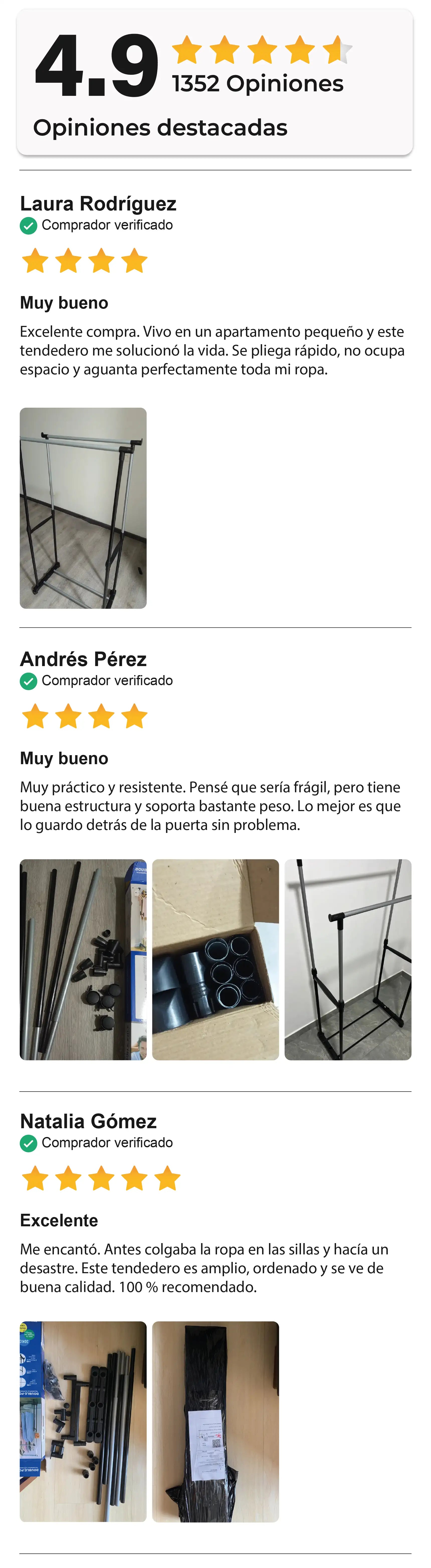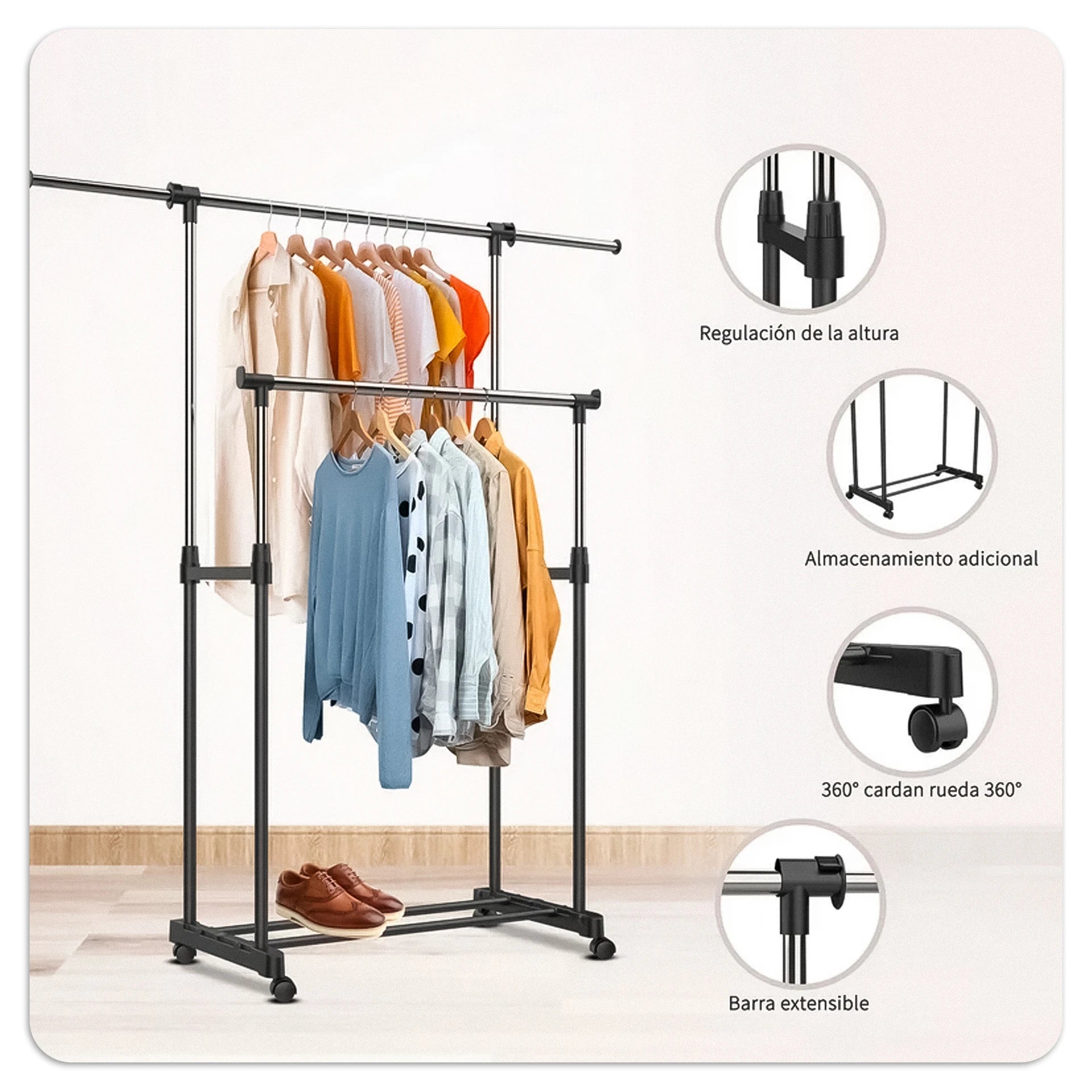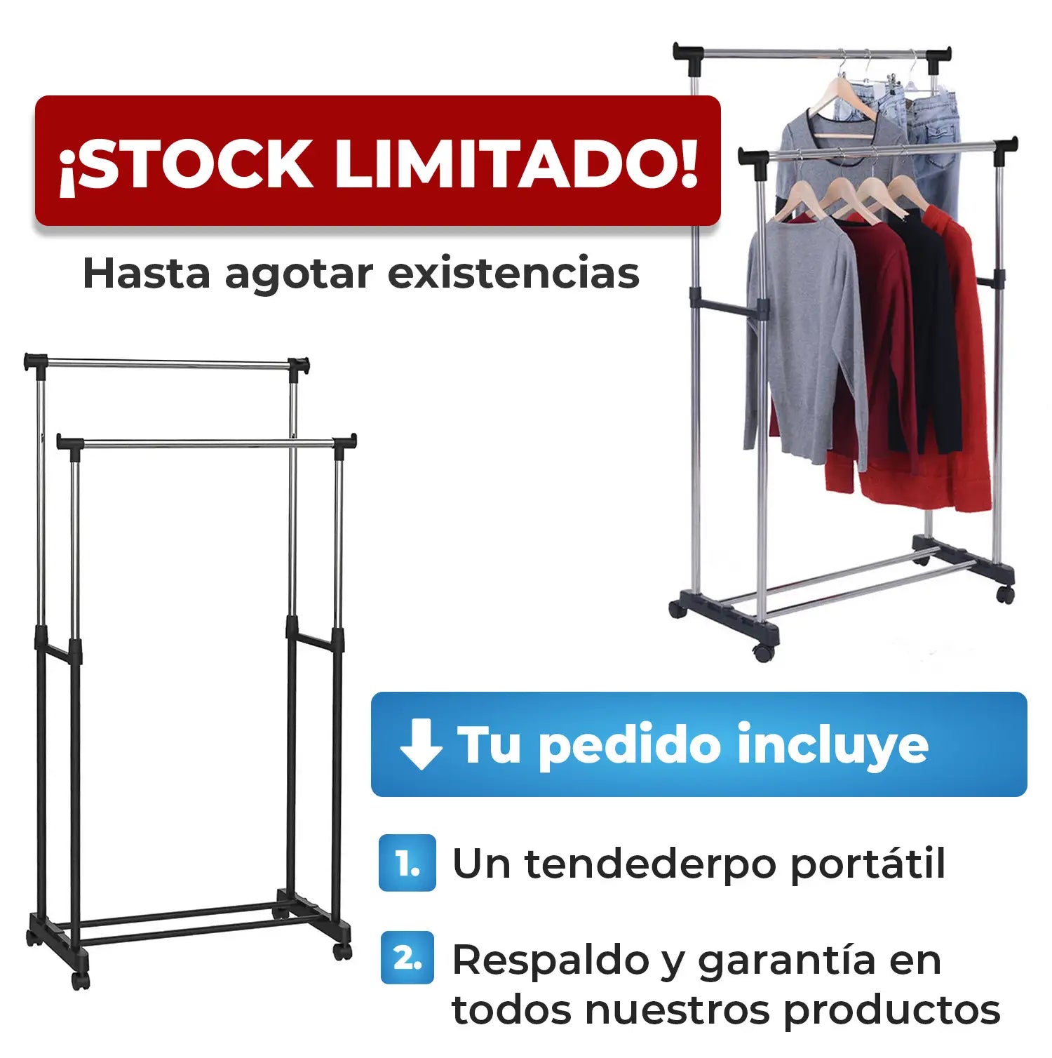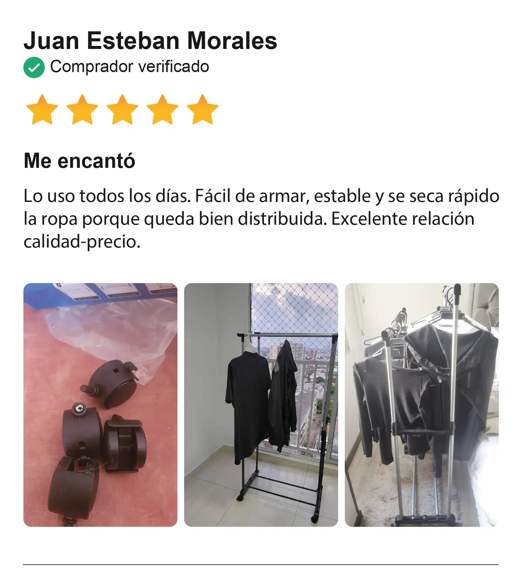 Estoy encantada con mi nuevo tendedero portátil doble. Su diseño ajustable me permite colgar camisas y abrigos con facilidad. Además, las ruedas hacen que sea tan conveniente moverlo de una habitación a otra. La recomiendo totalmente.